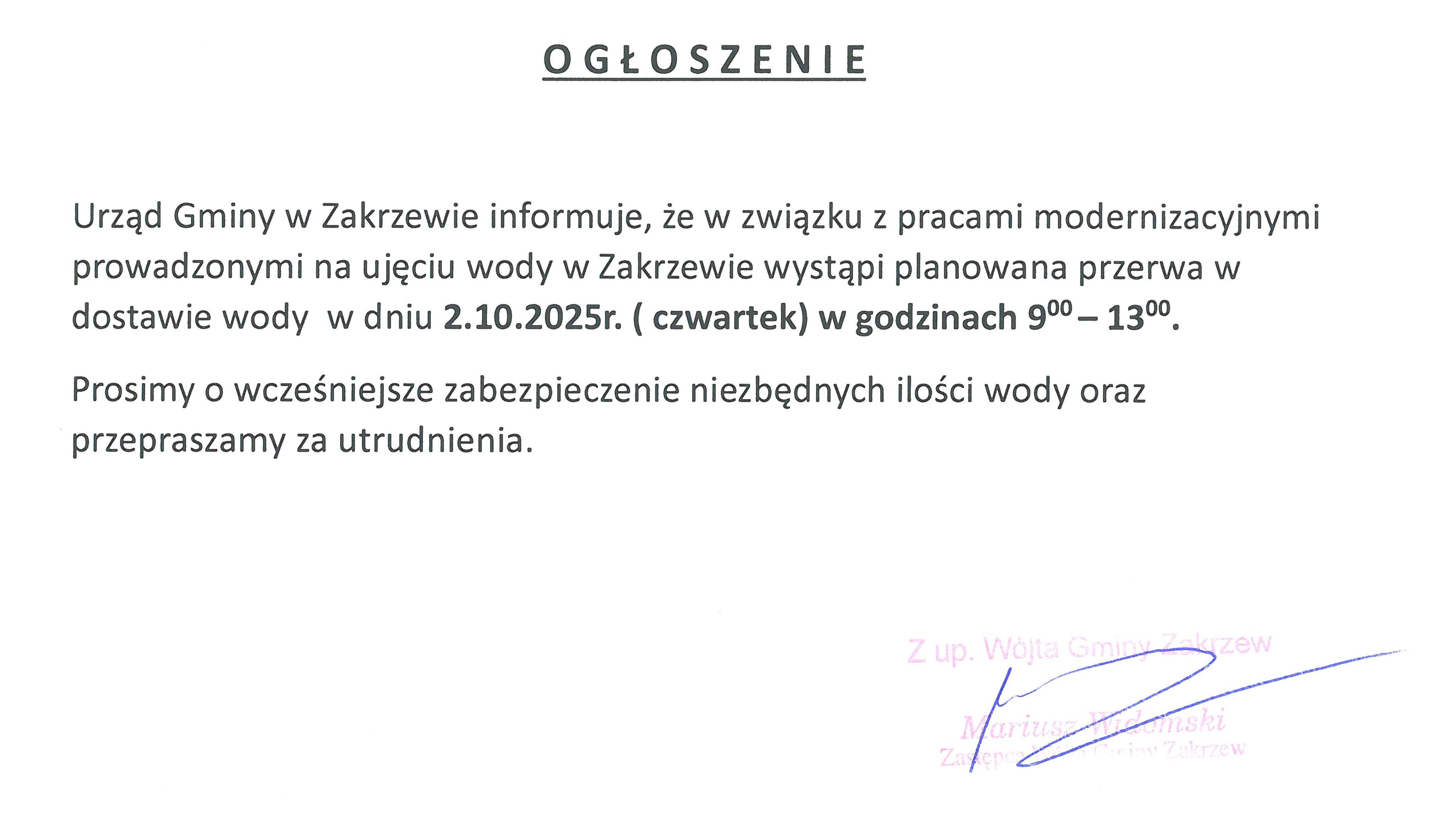 Przerwa w dostawie wody