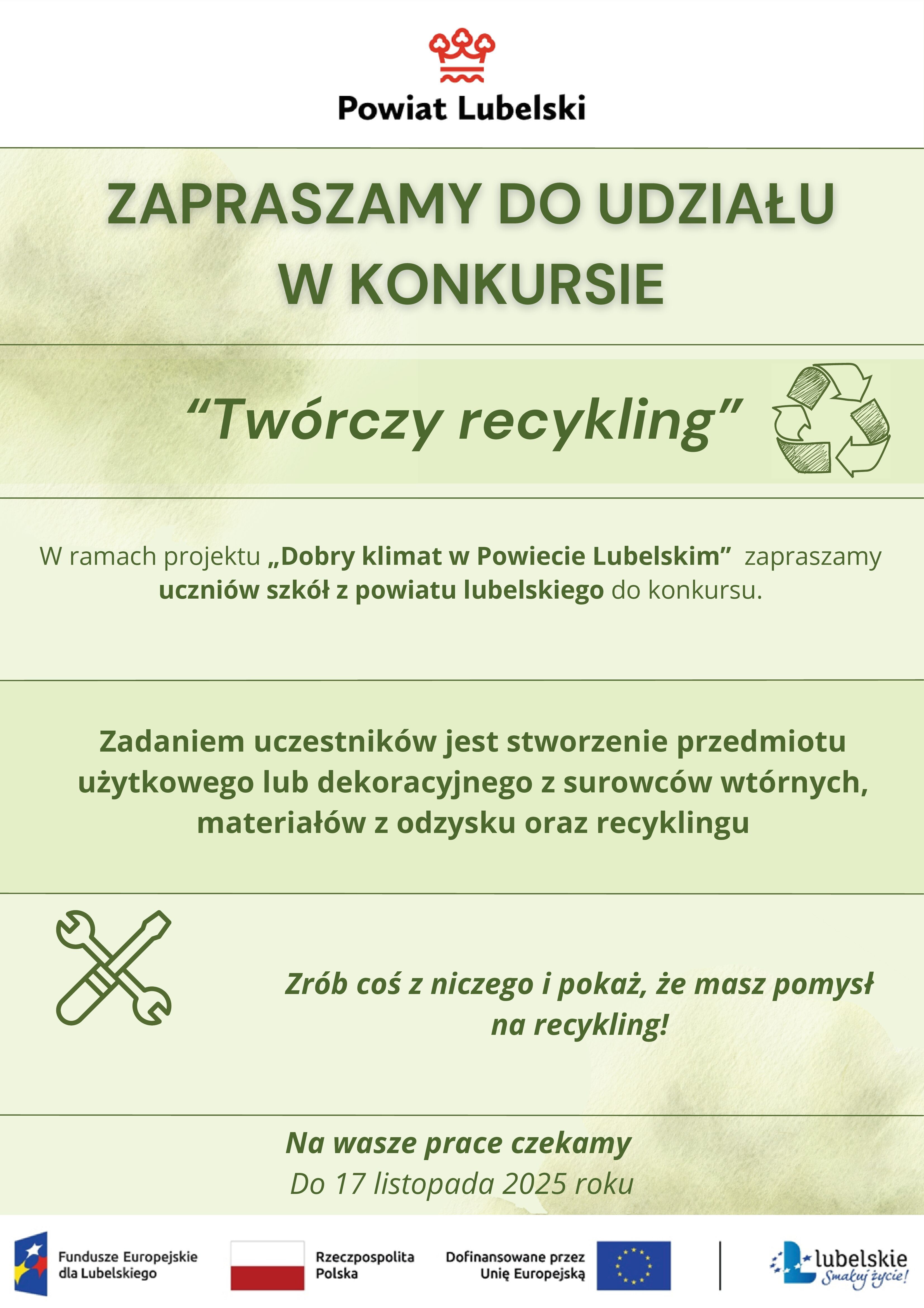 W ramach projektu „Dobry klimat w Powiecie Lubelskim” zapraszamy uczniów szkół z powiatu lubelskiego do konkursu.